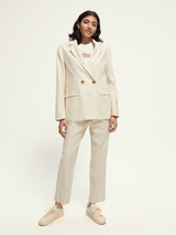 The Aline Double Breasted Relaxed Blazer Showcases a feminine shade of Bone colour. This elegant, double-breasted blazer flatters in all the right places. Wear it with the Aline High-Rise Straights-Leg Trousers for a fashion-forward look.