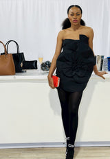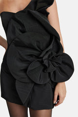 The kind of drama we love. The Beatrice Mini Dress has a bold three-dimensional flower at the front and textural petals that fold back over the playful mini-dress silhouette. The bold black hue makes this a favourite for any evening event.