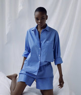 The striped pajama set edition showcases the label’s affinity for clean lines and comfortable fabrics. Including a relaxed shirt with a point collar and matching shorts with an elasticated waistband, this set features special details such as matching piping. making both pieces perfect for lounging, sleeping, or even wearing out. Comes with a matching sleep mask and a drawstring cotton pouch.